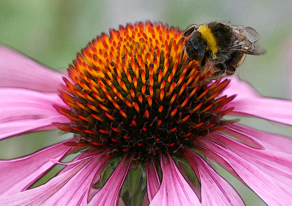 Verket utgår från ett digitalt fotografi taget år 2011, där en humla söker nektar i den varma mittpunkten av en solhatt.