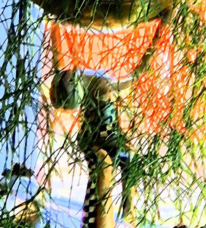Verket är skapat år 2026 och utgår från ett digitalt fotografi som därefter retuscherades och bearbetades i datorn. Genom grenarna framträder en rund form, som en skymt av jordklotets nedre halva. Linjer, nät och grenar korsar varandra och bildar ett skiktat mönster av ljus och färg. Något bekant anas, men förblir delvis dolt – som en bild av den värld som går vidare från generation till generation.