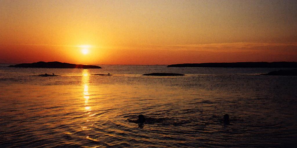 Verket är skapat år 2010 och utgår från ett digitalt fotografi som därefter 2012 retuscherades och bearbetades i datorn. Solen ligger lågt över horisonten och färgar havet i varma toner. Två badande syns som mörka siluetter i vattnet medan ljuset speglar sig i de stilla vågorna. Ögonblicket fångar övergången mellan dag och natt, där havet och himlen möts i ett stilla sken.
